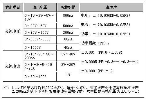 3.3, 输出电压、电流、功率、功率因数范围及准确度符合表中参数(20℃±2℃ ,输出值大于10%量程)